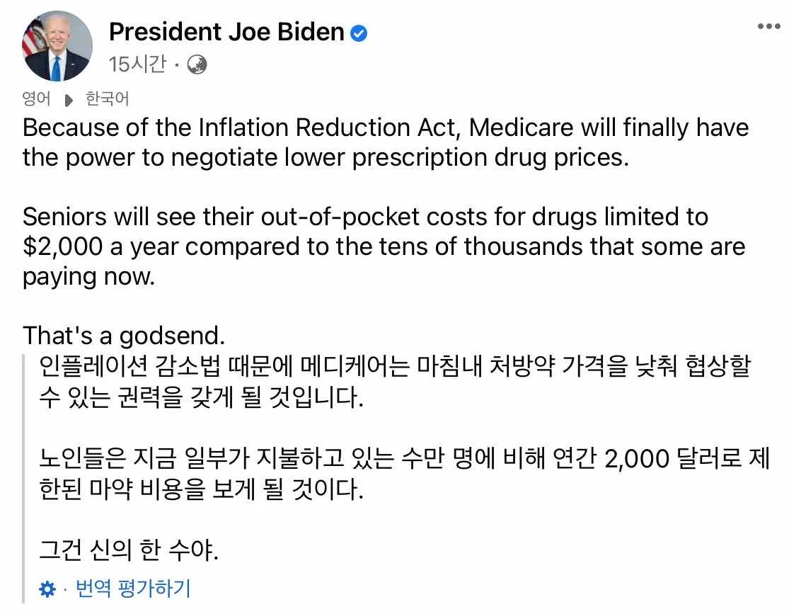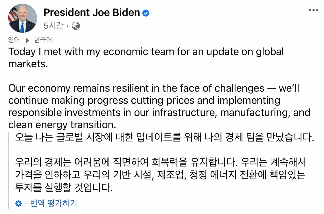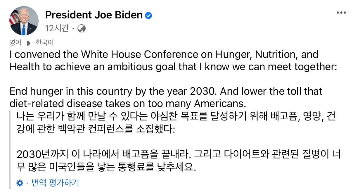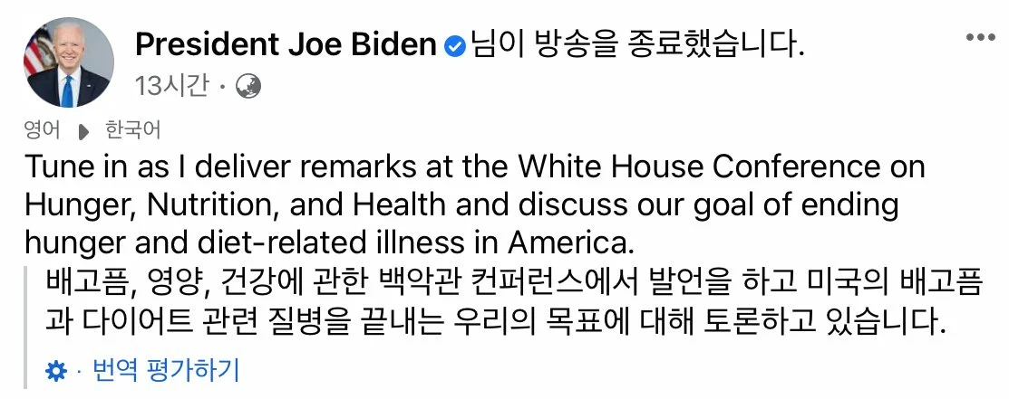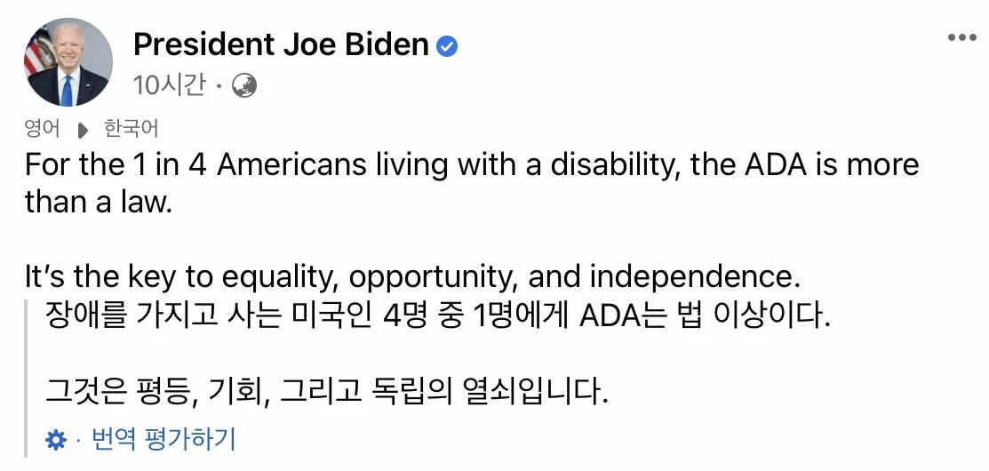 미국 대통령 조 바이든의 지난 하루 동안 페이스북 계정에 포스팅한 10건의 글(10건 모두 약자 응원글)